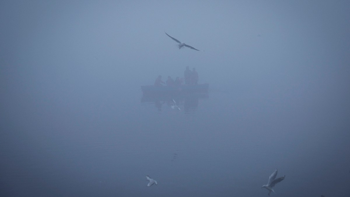 Fotoğrafta Hindistan’ın Yeni Delhi kentinde sisli bir kış sabahında Yamuna Nehri kıyısı görüntüleniyor.