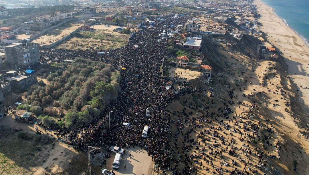 İsrail ve Hamas arasında rehine krizi çözüldü: Binlerce Filistinli evlerine dönüyorHamas ile İsrail arasındaki esir takasının ikinci turunda Arbel Yehud isimli İsrailli esirin serbest bırakılmaması nedeniyle başlayan kriz çözüldü. Hamas, İsrailli rehine Yehud ve bir asker rehinenin daha cumaya kadar bırakılacağını duyurdu. Hamas, anlaşmanın ilk aşamasında bırakılacak rehinelerin listesini de İsrail’e iletti. Krizin çözülmesiyle birlikte yaşanan anlaşmazlıktan dolayı Gazze Şeridi’nin kuzeye geçiş noktasında sıkışıp kalan binlerce Filistinlinin yerel saatle 07.00’dan itibaren geçişine izin verileceği belirtildi. Saatin 07.00 olmasıyla beraber, binlerce Filistinli kuzeydeki evlerine doğru yürümeye başladı.