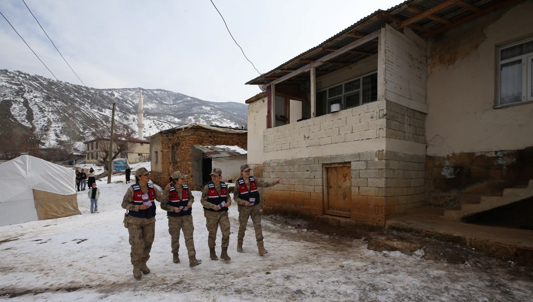 Olumsuz hava koşullarına rağmen en ücra köylere giden kadın komutanlar, şiddete maruz kalma ihtimali bulunanların rahatlıkla güvenlik güçlerine ulaşabilmesi için geliştirilen KADES programını tanıtıyor.