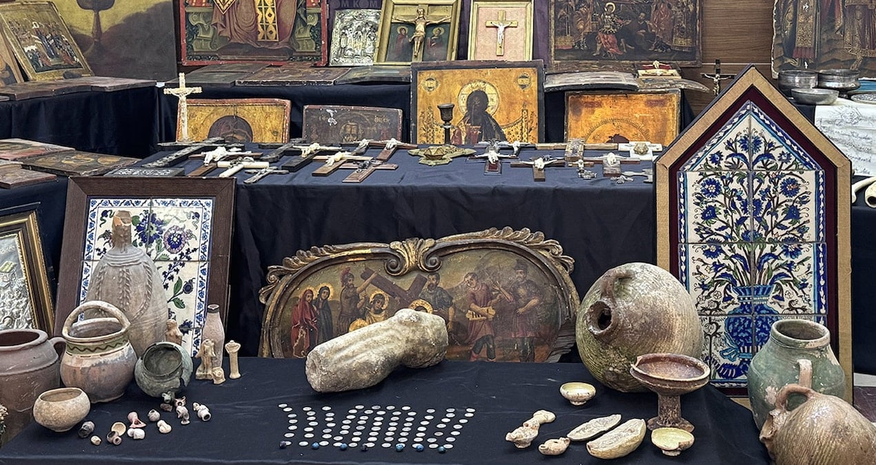 Adreslerdeki aramalarda, Anadolu Selçuklu, Osmanlı, Roma ve Bizans dönemlerine ait olduğu değerlendirilen üzerinde Türk varlığının sembolü olarak kabul edilen aslan ve güneş tasviri damgası bulunan 81 sikke, Hz. İsa, Hz. Meryem ve Hristiyanlık dönemine ait aziz ve azizelerin resmedildiği ahşap ve gümüş kaplamalı 184 ikona, ibadethanelerden çalınma ve sökülme yoluyla elde edilmiş 35 taşınmaz karo parçası, mermer heykel bacağı, genellikle lahit mezarların içerisinde bulunan 7 cam süs eşyası olmak üzere toplamda 931 eser ile obje ele geçirildi.